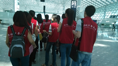 為了回饋社會,服務大眾,8月15日,華訊方舟義工服務隊10余名義工報名參加西鄉義工聯組織的T3航站樓實地培訓。此外,西鄉義工聯理事長虞朝霞、寧茂玲理事,深圳市義工聯、深圳機
